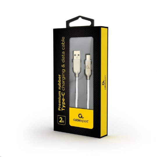 GEMBIRD CABLEXPERT kábel USB-A na USB-C (AM/CM), 2 m, pogumovaný, biely, blister