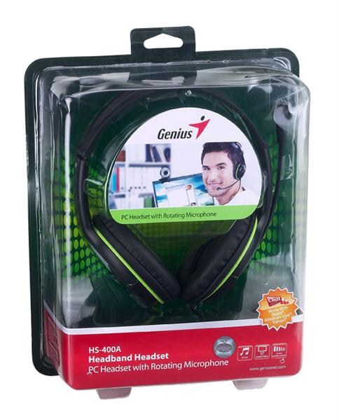 .GENIUS sluchátka s mikrofonem HS-400A, černozelená, + redukce na Single Jack