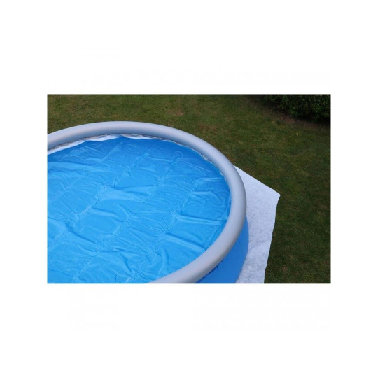 Geotextilná podložka nielenže chráni dno bazéna pred plesňami, pretrhnutím alebo prorastaním trávy, ale vďaka nej máte aj pohodlnejší pocit pri prechádzaní bazénom. Je vyrobená z kvalitnej geotextílie a pokladá sa na rovné preosiate zemiaky alebo piesok. Vďaka svojim rozmerom je vhodná pre bazény o rozmeroch 5,5 x 3,7 metra.