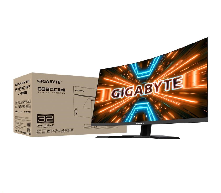 GIGABYTE LCD - 31.5" herný monitor G32QC A, 2560x1440 QHD, 350 cd/m2, 1 ms, 2xHDMI 2.0, 1xDP 1.2, 2xUSB 3.0, krivka, VA