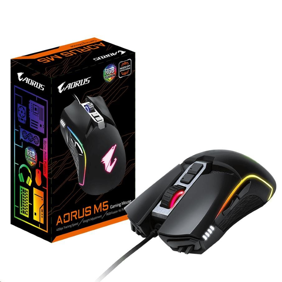 Herná myš GIGABYTE AORUS M5, USB, optická, až 16000 DPI