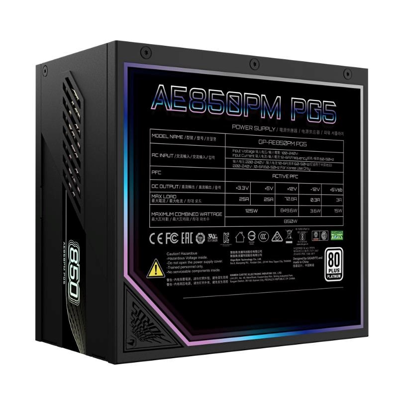 AE850PM PG5 dokáže vydržať až trojnásobok výkonu GPU a dvojnásobok celkového výkonu. Je plne kompatibilný so štandardom Intel ATX 3.1, podporuje až 200% výkyv výkonu a dosahuje 70% účinnosti pri nízkej záťaži. Priložený vysoko kvalitný natívny 16kolíkový kábel navyše zabezpečuje kompatibilitu s grafickými kartami PCIe Gen 5 a poskytuje výkon až 600 wattov.