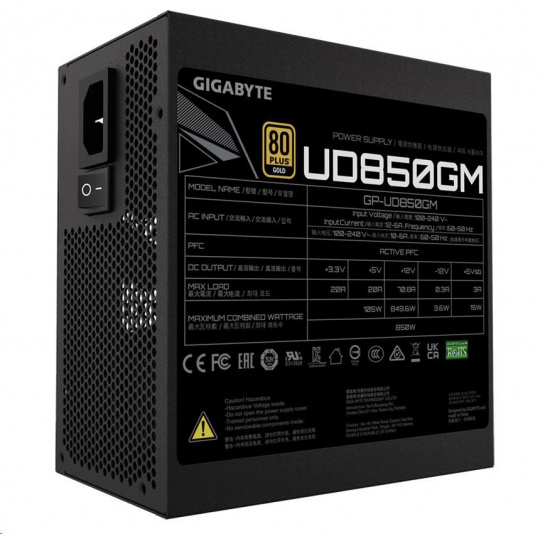 Napájací zdroj GIGABYTE UD850GM, 850W, 80+ Gold, 120mm ventilátor