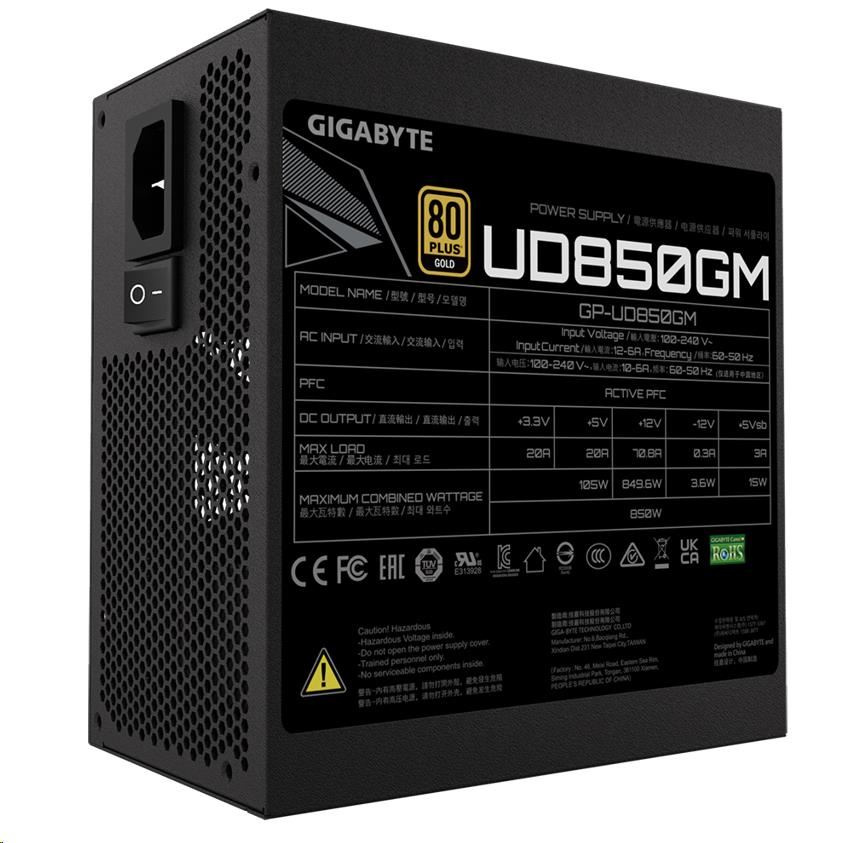Napájací zdroj GIGABYTE UD850GM, 850W, 80+ Gold, 120mm ventilátor