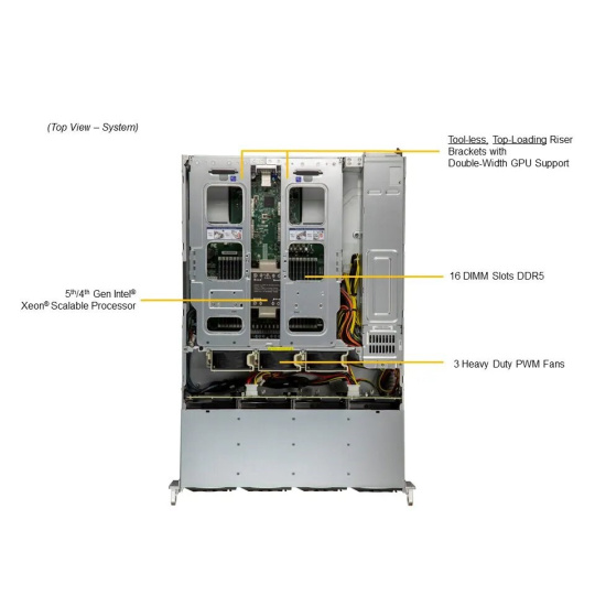 Supermicro SYS-521C-NR je flexibilný 2U rackový server optimalizovaný pre cloudové úložisko a appliance nasadenie. Vďaka podpore jedného procesora Intel® Xeon® 4. generácie a širokým možnostiam rozšírenia pamäte a úložiska je ideálnou voľbou pre cloudové aplikácie a storage riešenia.