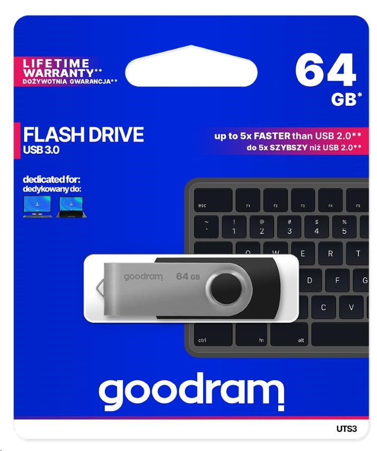 GOODRAM Flash Disk 64GB UTS3, USB 3.0, čierna