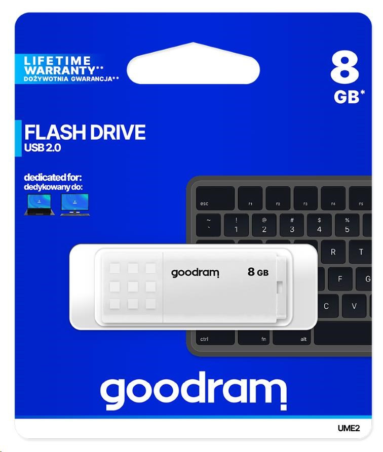 UME2 memory is available in the capacities from 8 GB to 128 GB. The used components enable to read speeds of up to 20 MB / s and write from 5 MB / s. Like all other GOODRAM USB sticks, UME2 is covered by a lifetime manufacturer’s warranty.