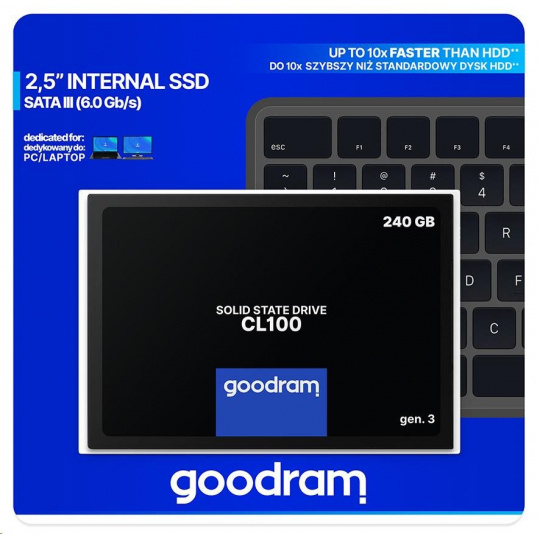GOODRAM SSD CL100 Gen.3 240 GB SATA III 7 mm, 2,5" (R: 520 MB/s; W 400 MB/s)