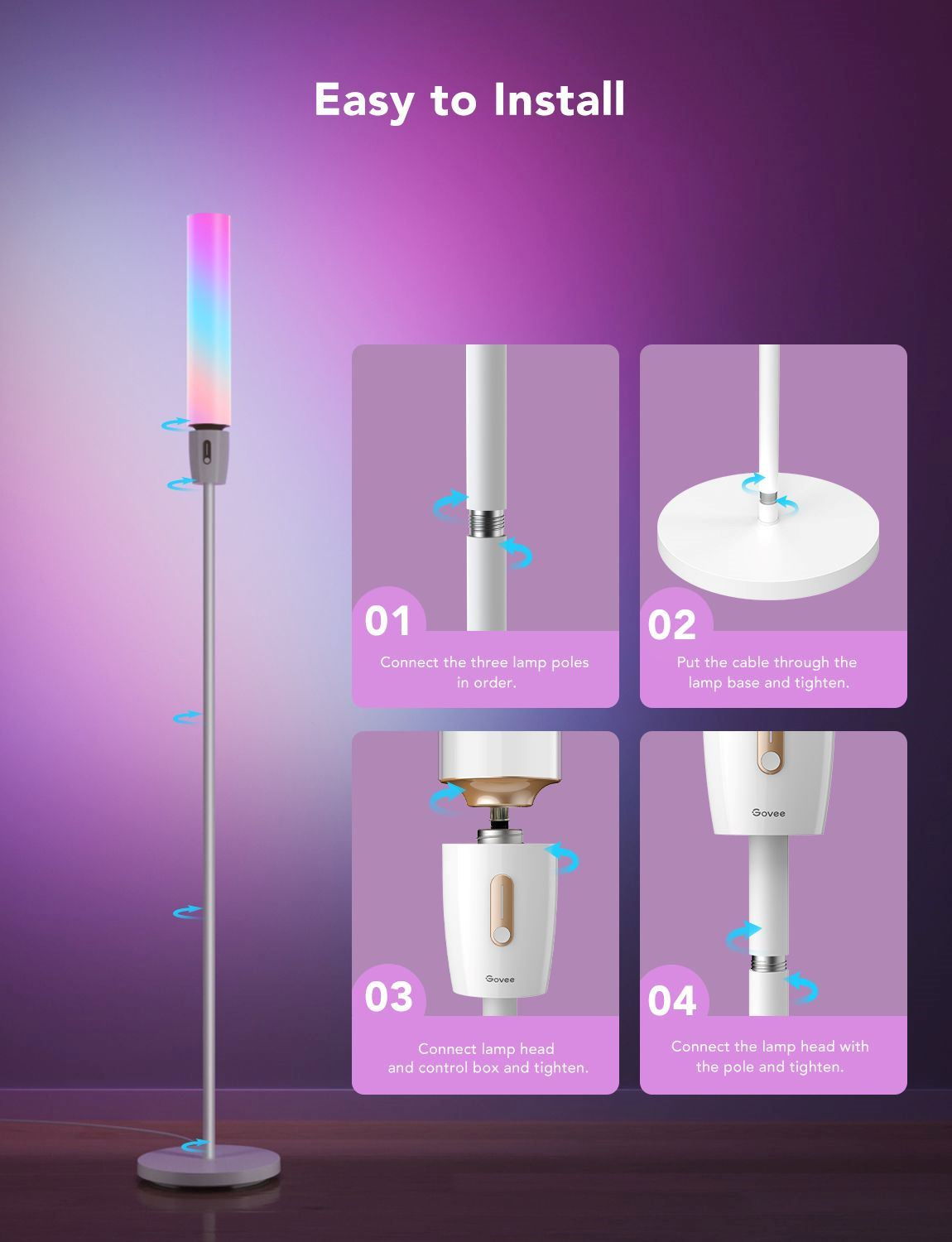 Govee Cylinder Floor Lamp je efektné RGBIC svietidlo s 360° rozsahom, pomocou ktorého vykúzlite vo svojom domove pôsobivé svetelné efekty. Lampa zaberá minimálny podlahový priestor, a pritom dokáže svetelným výkonom 1500 lúmenov osvetliť významný priestor. Vďaka diodám s technológiou RGBIC ponúkne Cylinder Lamp viac ako 16 miliónov farieb s úplne plynulými prechodmi. Pri výške takmer 180 cm lampa zaberie len 26 cm, kruhovým podstavcom minimálny priestor a hodí sa tak aj do kompaktných interiérov. Vďaka 360° rozsahu dokáže osvetliť všetky steny v miestnosti. Životnosť lampy je u Govee štandardných 50 000 hodín. Ovládanie je možné aplikáciou Govee Home, Google Home, pomocou asistentov Google, Apple a Amazon. Samozrejmosťou sú prednastavené scény, ktorých je tu 64, niekoľko režimov synchronizácie s hudbou a ak si ani tak nevyberiete, čaká na vás DIY režim, ktorý vám dá 100 % kontrolu, pričom jediným limitom je vaša fantázia.