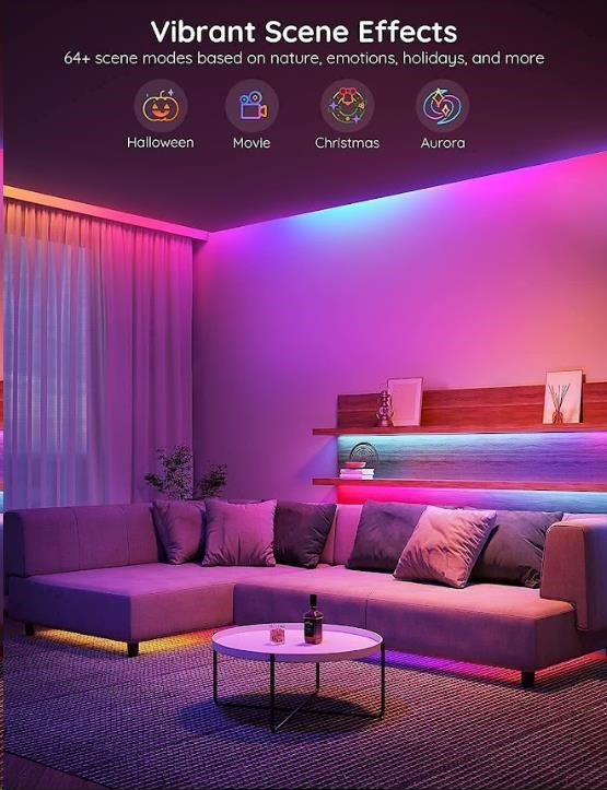 Úsporné interiérové chytré LED pásiky Govee WiFi RGBIC PRO SMART 5m s životnosťou až 50.000 hodín spravia z vášho domu designový skvost. Môžete ich použiť takmer všade - obývačka, spálňa, kuchyňa, pracovňa atď. Zobrazuje až 16 miliónov farieb, ktorých intenzitu môžete nastaviť od 1-100 % a vďaka technológii RGBIC si môžete rozdeliť pásik na samostatné segmenty, pre ktoré si potom môžete voliť rozdielne farby. Vyberte si zo 64 režimov osvetlenia a pri počúvaní obľúbenej hudby sa budú svetlá synchronizovať vďaka vstavanému mikrofónu a vytvoria nezabudnuteľný zážitok. Alebo si jednoducho nastavte vlastné farebné kombinácie v režime DIY. Príkazy môžete zadávať aj hlasovo cez Siri, Amazon Alexa alebo Google Assistant, cez aplikáciu Govee Home na smartfóne alebo tablete alebo cez Control box. Svetlo má dĺžku 5 metrov a jeho inštalácia je veľmi jednoduchá. Pomocou časovača môžete svetlá zapínať a vypínať automaticky podľa západu a východu slnka, alebo zaspávania a ranného vstávania.
