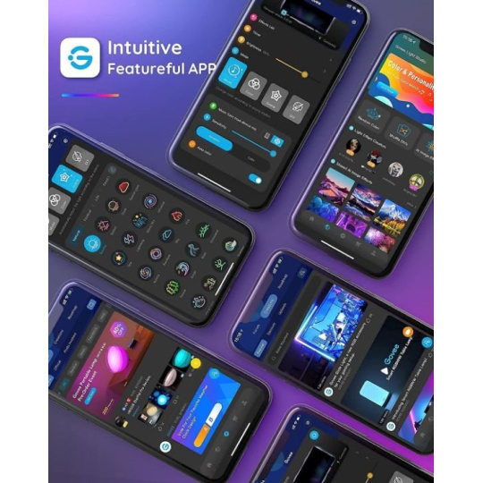 Aplikácia Govee Home ponúka viac ako 64 scénických a dynamických režimov na každú príležitosť. Farebné kombinácie si môžete nastaviť podľa svojich preferencií, vkusu a momentálnej nálady.