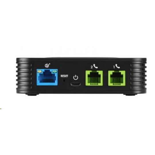 HT802 je analógový adaptér (ATA) s 2x portom FXS na pripojenie dvoch analógových telefónov k sieti VoIP.