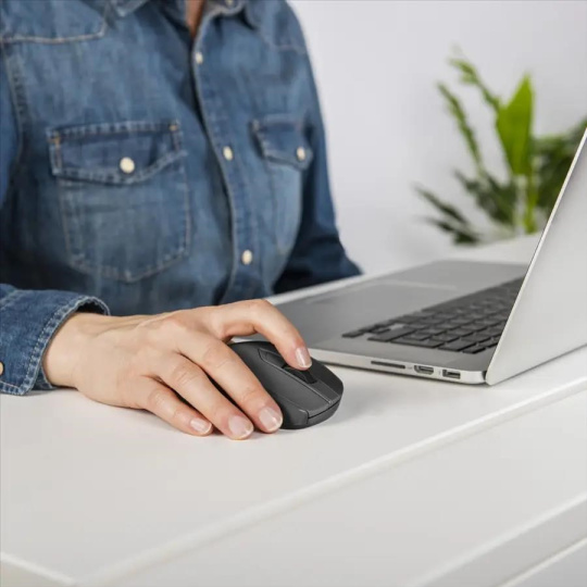 - bezdrôtová 7-tlačidlová myš s vysokou presnosťou pohybu na prakticky každom povrchu - tiché hlavné tlačidlá umožňujú nerušenú prácu bez akéhokoľvek rušivého klikania - DPI tlačidlo pre zmenu rozlíšenia (600/1200/1600/3200) - 4-smerové rolovacie koliesko pre vertikálne aj horizontálne rolovanie - samostatné ON/OFF tlačidlo - inteligentné riadenie spotreby energie aktivuje Standby režim, ak myš nepoužívate - ergonomický tvar pasuje výborne do pravej ruky - softvér na preprogramovanie tlačidiel - Browser tlačidlá s funkciou vpred/vzad na internete - 2,4 GHz technológia pre spoľahlivý a nerušený prenos signálu - USB prijímač sa dá prenášať v tele myšky - LED indikácia vybitých batérií  Systémové požiadavky - operačný systém: Windows 1/10/8/7/Vista/XP, Mac OS 10.10 alebo vyššie  Technické parametre: - pripojenie: USB A vidlica - rozlíšenie: 600/1200/1600/3200 DPI - počet tlačidiel: 7 - rolovacie koliesko - napájanie: 2x AA batéria - rozmery: 6,7 x 10,7 x 3,7 cm - hmotnosť: 138 g  Obsah balenia: - laserová bezdrôtová myš - USB prijímač - 2x batérie AAA - návod na použitie.