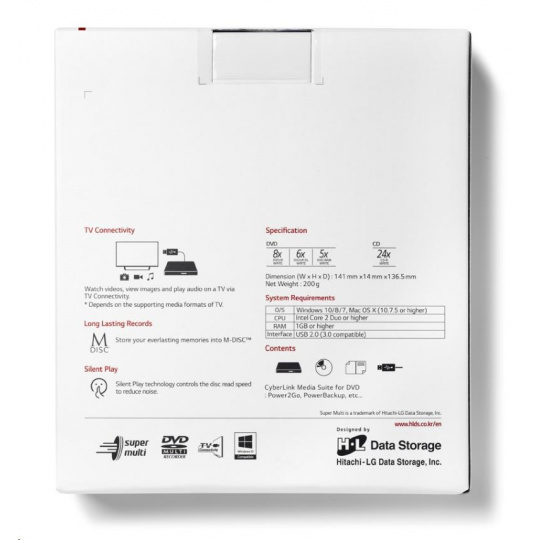 HITACHI LG - externá mechanika DVD-W/CD-RW/DVD±R/±RW/RAM GP57EB40, Slim, čierna, box+SW