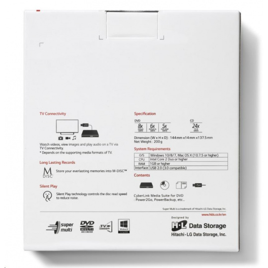 HITACHI LG - externá mechanika DVD-W/CD-RW/DVD±R/±RW/RAM GP60NS60, Slim, Silver, box+SW