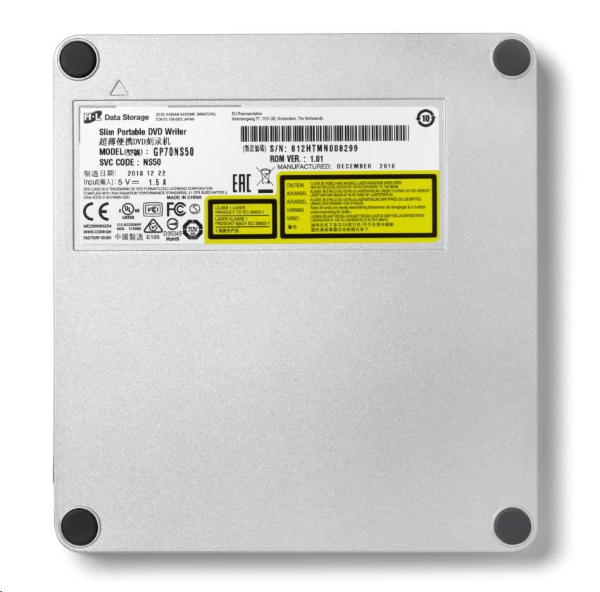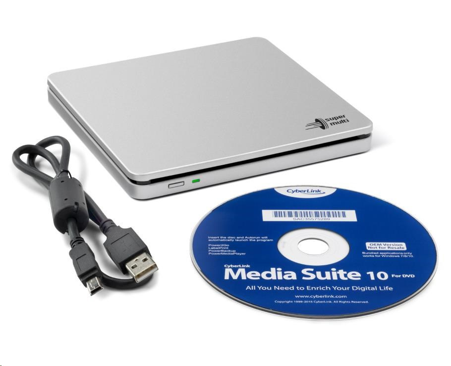HITACHI LG - Externý DVD-W/CD-RW/DVD±R/±RW/RAM/M-DISC GP70NS50, Blade Ultra Slim, strieborný, krabica+SW