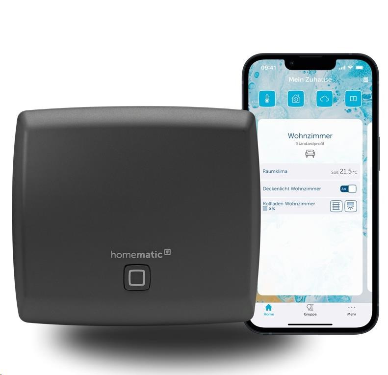 Pôsobí ako prístupový bod a ponúka pohodlné nastavenie a ovládanie komplexného systému chytré domácnosti Homematic IP pomocou intuitívnej aplikácie (pre Android a iOS v CZ) určené pre chytré telefóny a tablety. Mobilná aplikácia umožňuje okamžitú reakciu na správy a upozornenia zo systému vašej chytré domácnosti a spája všetky zariadenia Homematic IP prostredníctvom bezplatného neobmedzeného cloudu, ktorý umožňuje nastavenie a riadenie systému odkiaľkoľvek na svete, prenos dôležitých informácií a aktualizáciu softvéru a firmvéru zariadení, odovzdáva konfiguračné a prevádzkové príkazy z aplikácie Homematic IP smerom ku jednotlivým zariadeniam chytré domácnosti.