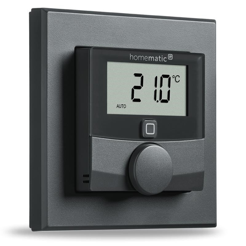 Jednou z takýchto zariadení je aj bezdrôtový Nástenný termostat so senzorom vlhkosti v antracitovej farbe (HmIP-WTH-A) z radu Homematic IP s podsvieteným LED displejom o veľkosti 1,74" pre zobrazenie teploty a vlhkosti, predstavujúci inteligentný spôsob regulácie vykurovania a úspory energií.