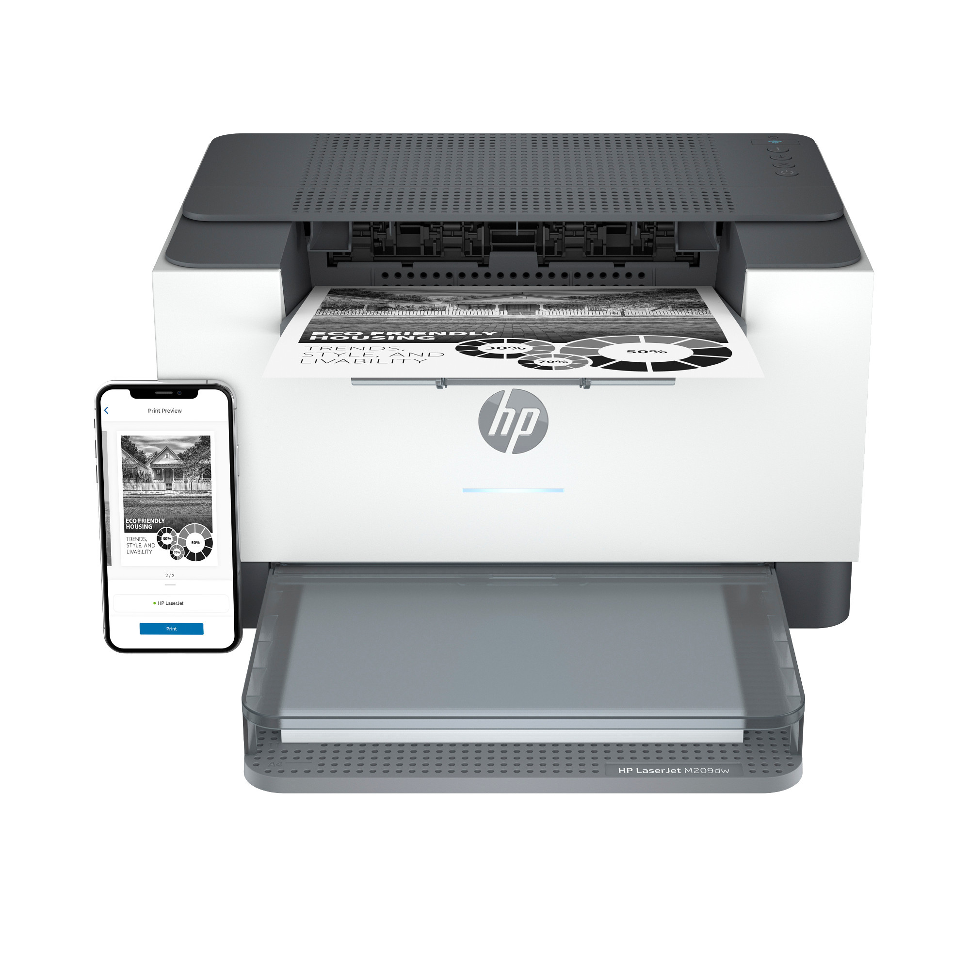 .HP LaserJet M209dw štandard (A4, 29 strán za minútu, USB, Ethernet, Wi-Fi, duplex)