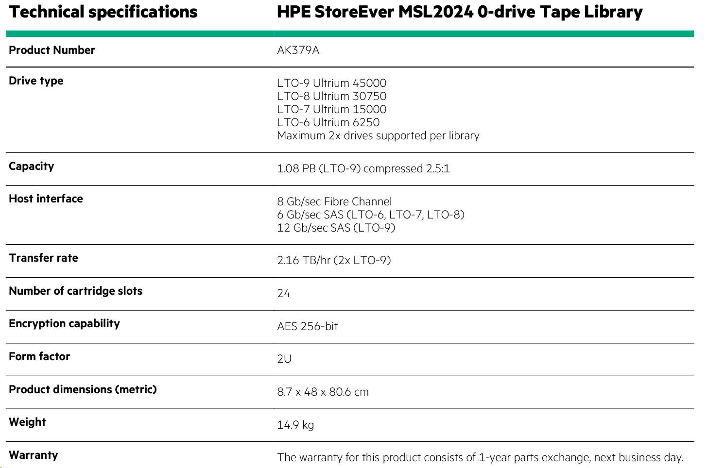 HPE StoreEver MSL2024 0-drive Tape Library.