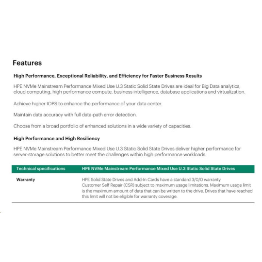 HPE 3.2TB NVMe Gen4 Mainstream Performance Mixed Use SFF BC U.3 Static V2 Multi Vendor P65015-B21 RENEW