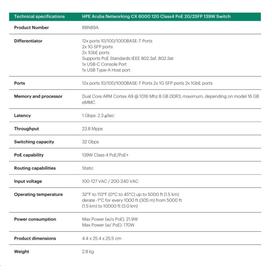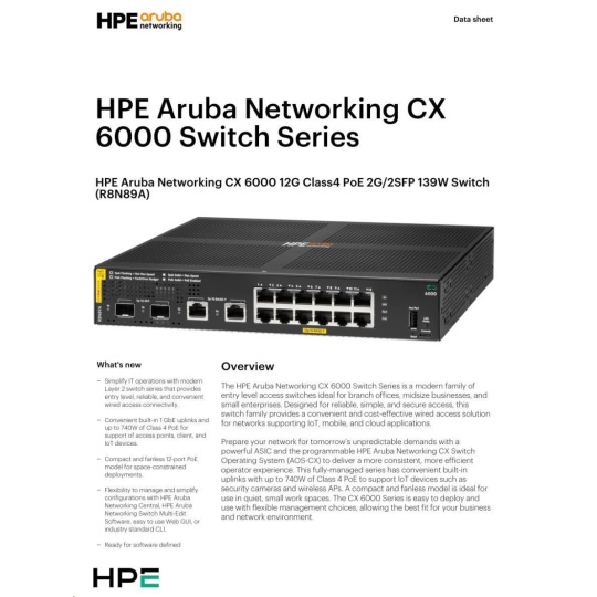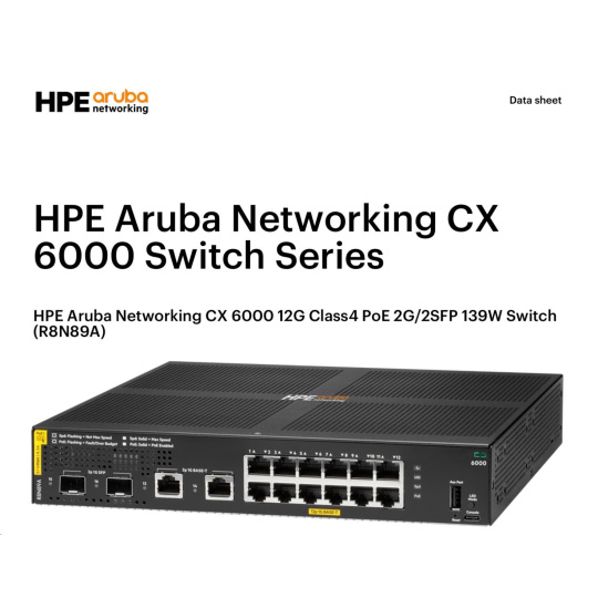 HPE Aruba Networking CX 6000 12G Class4 PoE 2G/2SFP 139W Switch (R8N89A)