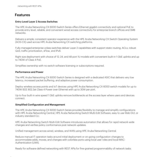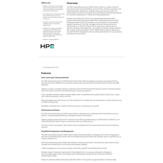 HPE Aruba Networking CX 6000 12G Class4 PoE 2G/2SFP 139W Switch