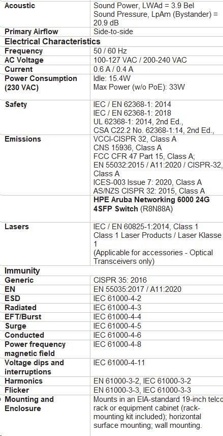 Specification 6000 24G 4SFP Switch (R8N88A)
