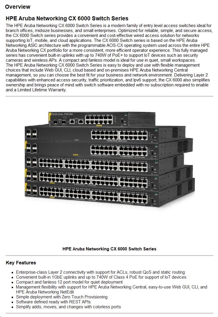 HPE Aruba Networking CX 6000 12G Class4 PoE