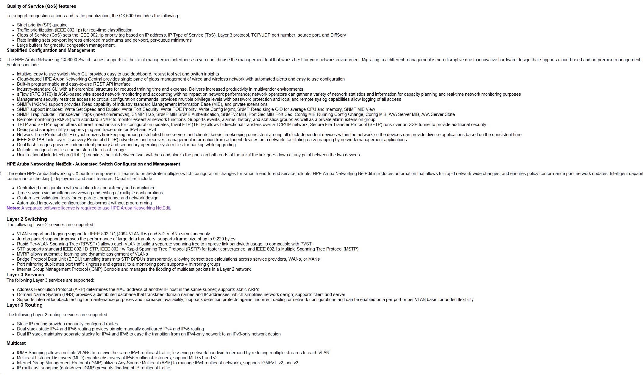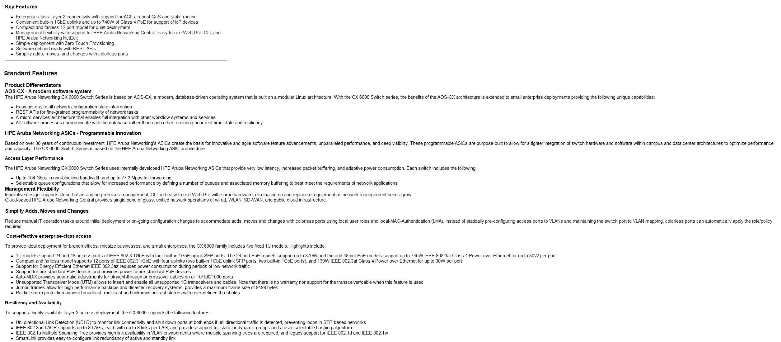 HPE Aruba Networking CX 6000 24G Class4 PoE