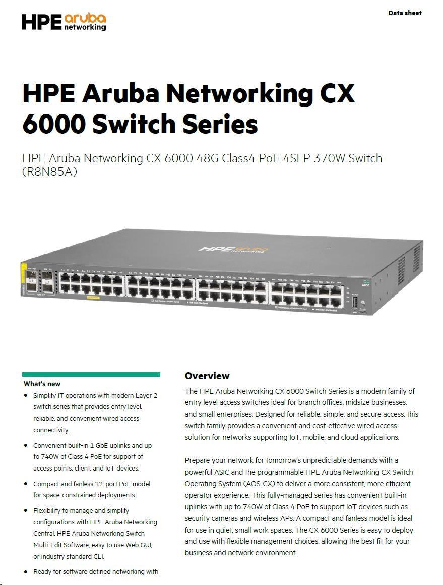 HPE Aruba CX 6000 48G PoE Switch - Specifications