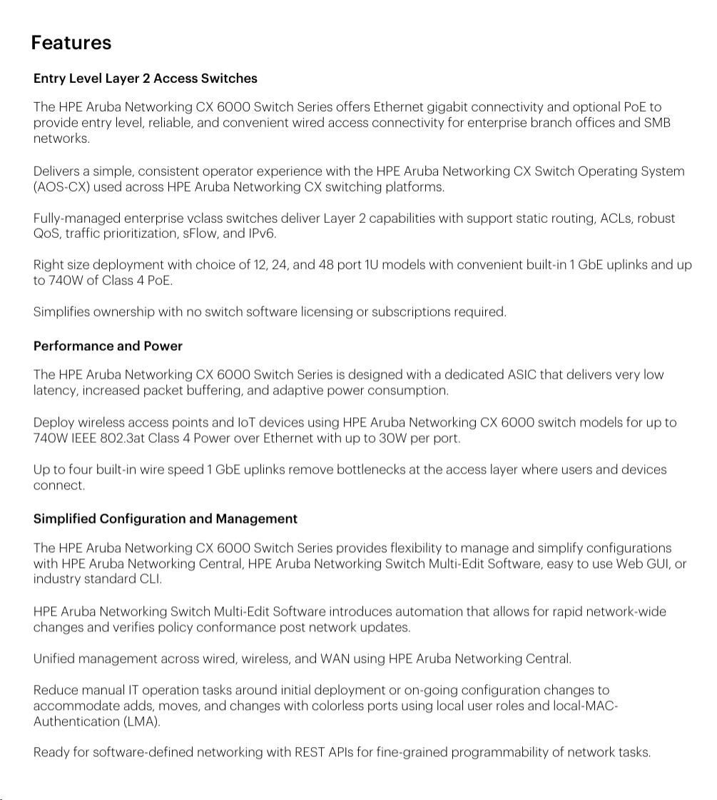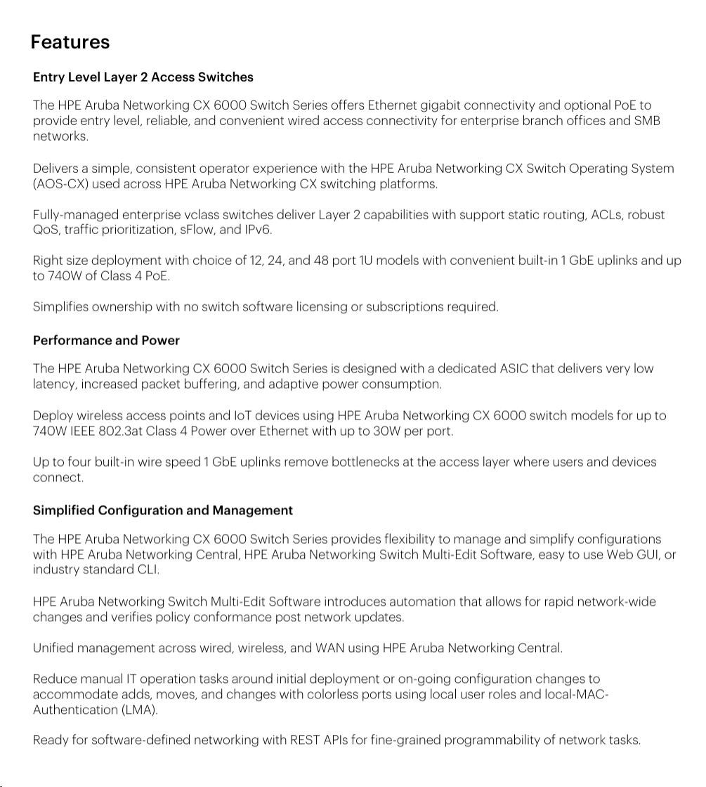 HPE Aruba Networking CX 6000 8p 10M/100M/1G Class4 PoE 2p SFP 1G 67W Switch.