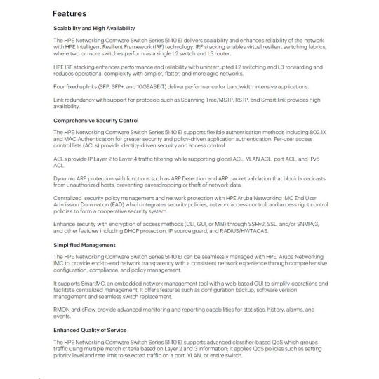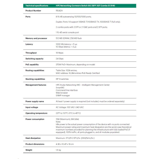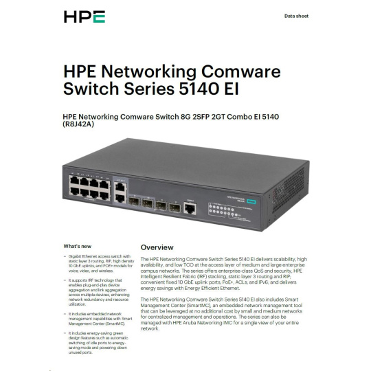 .HPE Networking Comware Switch 8G 2SFP 2GT Combo EI 5140 R8J42AR RENEW