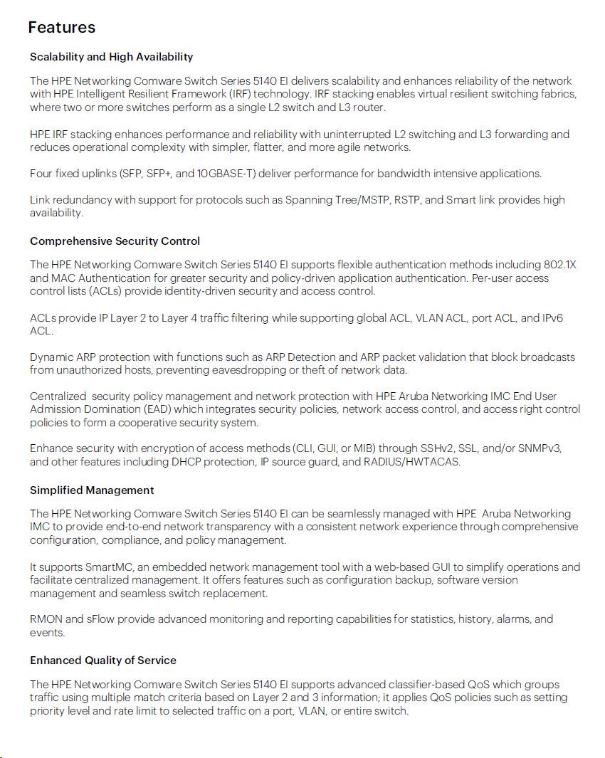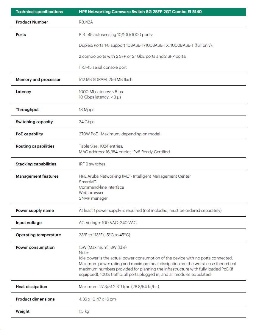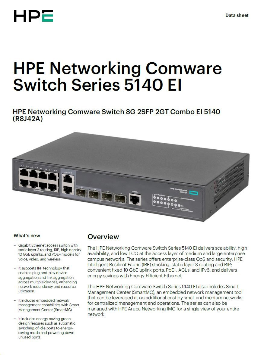 .HPE Networking Comware Switch 8G 2SFP 2GT Combo EI 5140 R8J42AR RENEW