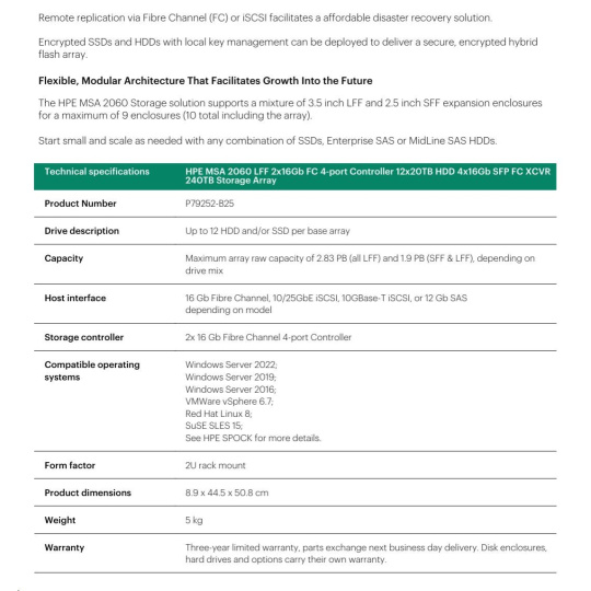 HPE MSA 2060 LFF 2x16Gb FC (4port Controller+4x16Gb SFP FC XCVR) 240TB (12x20TB/7.2k SATA) Storage Array Smart Choice