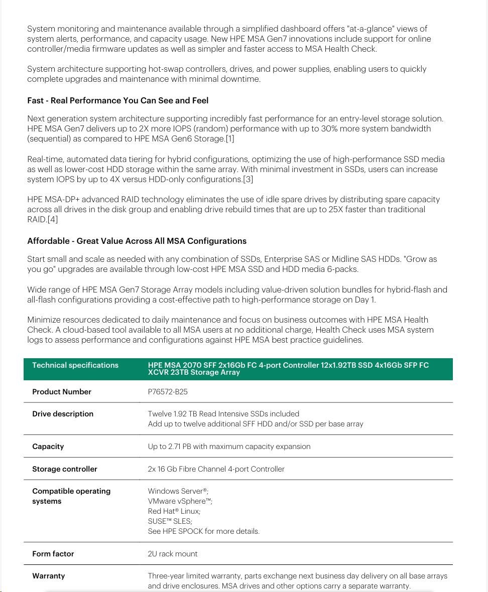 HPE MSA 2070 LFF 2x32Gb FC 4p Array.
