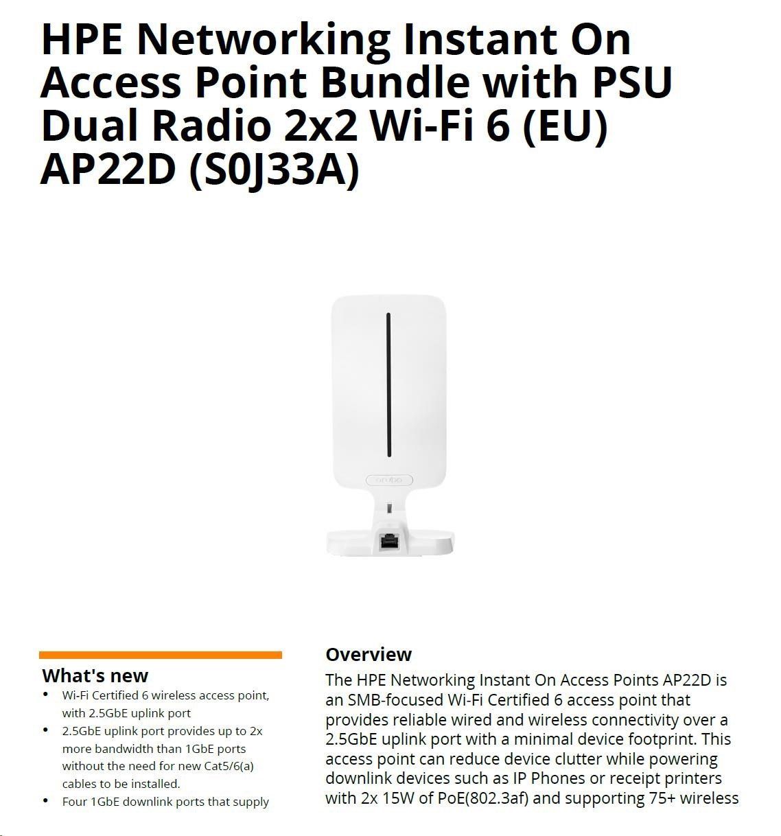 HPE Aruba Instant On Access Point AP22D Bundle with PSU Dual Radio 2x2 Wi-Fi 6 (EU) AP22D (desktop or wallmount)