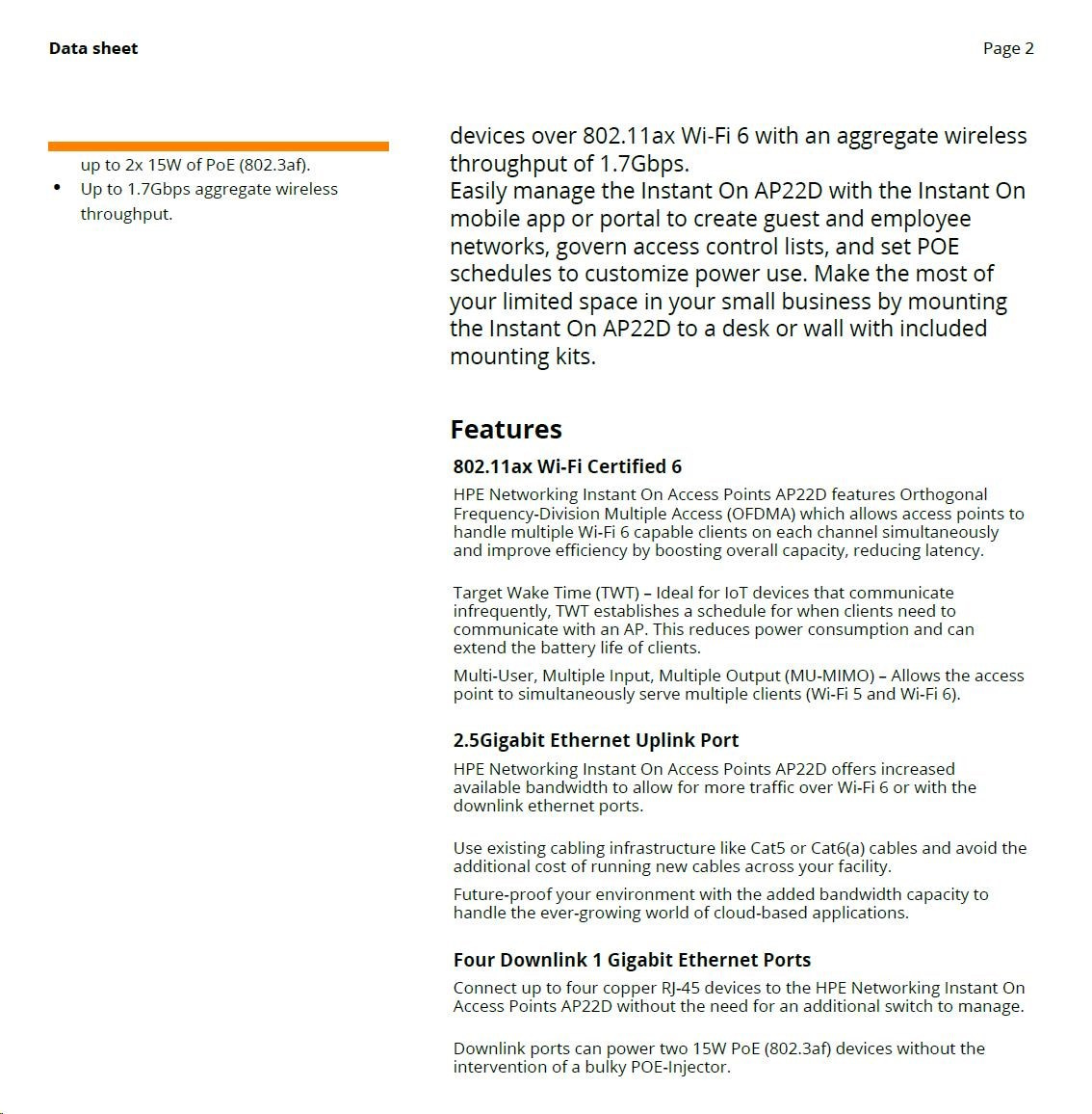 HPE Networking Instant On Access Point AP22D Bundle with PSU Dual Radio 2x2 Wi-Fi 6 (EU) AP22D.