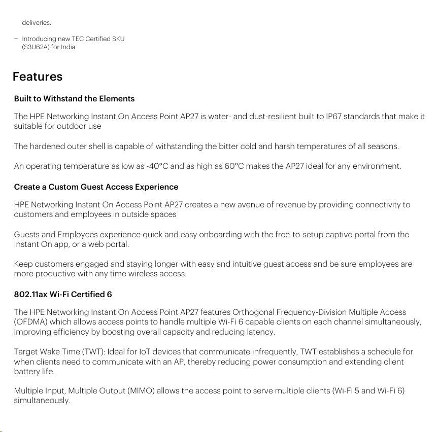 | Trusted Platform Module (TPM) All HPE Networking Instant On Access Points have an installed TPM for secure storage of credentials, keys, and boot codes.