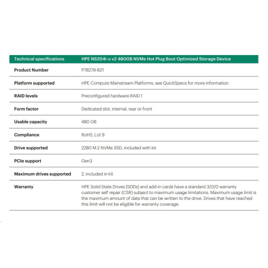 HPE NS204i-u v2 480GB NVMe Hot Plug Boot Optimized Storage Device