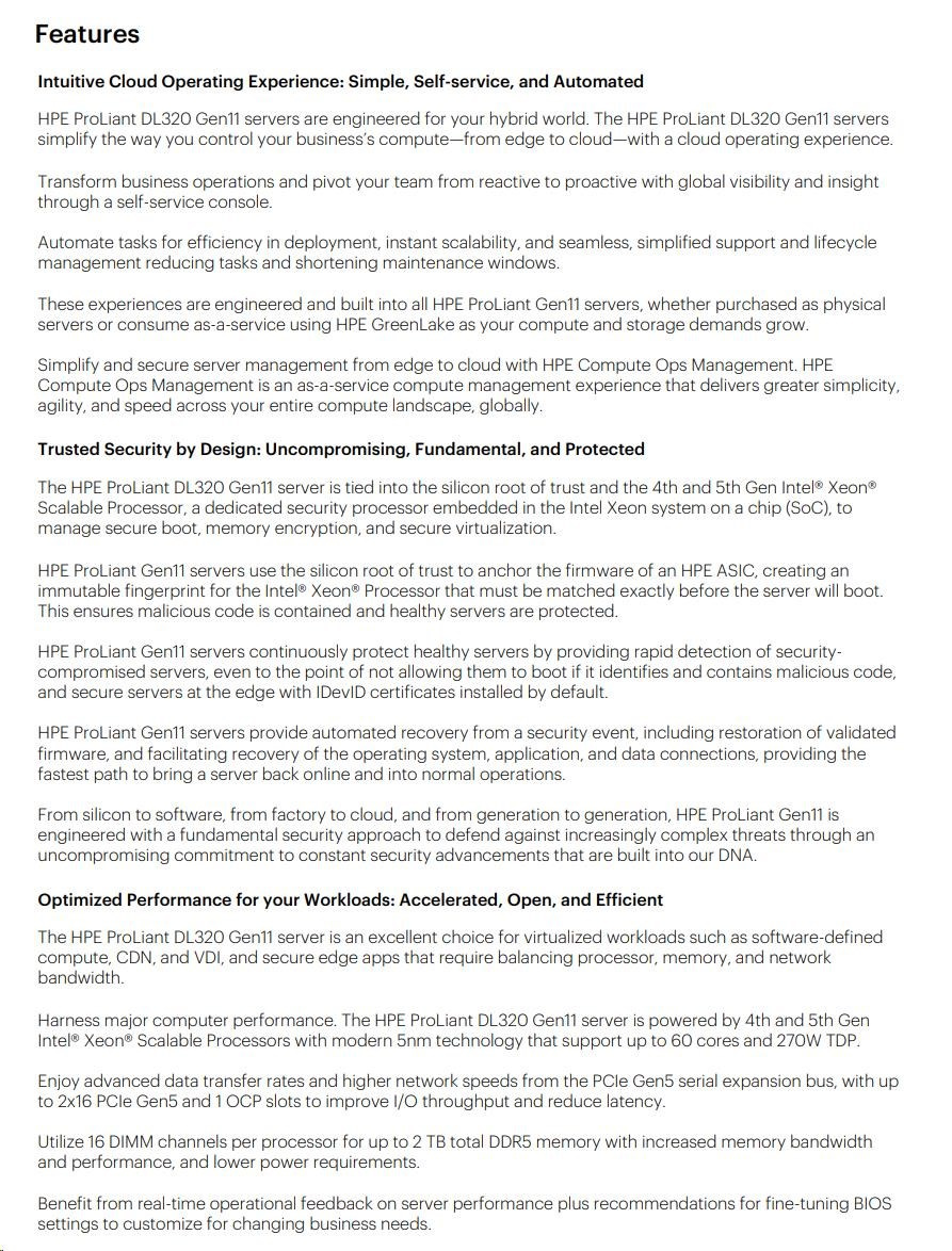 Model Name HPE PL DL320g11 4514Y (2.0/16C/4400) 2x32G 2x480G SATA SSD MR408i-o 8SFFBCU3 2x1000W 2x1Gb 1U EIR