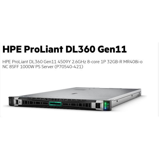 | Model Name | HPE ProLiant DL360 Gen11 4509Y 2.6GHz 8-core 1P 32GB-R MR408i-o NC 8SFF 1000W PS Server |