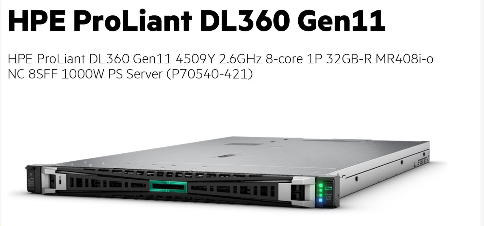 | Model Name | HPE ProLiant DL360 Gen11 4509Y 2.6GHz 8-core 1P 32GB-R MR408i-o NC 8SFF 1000W PS Server |