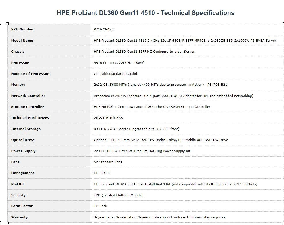 HPE ProLiant DL360 Gen11 4510 - Specs