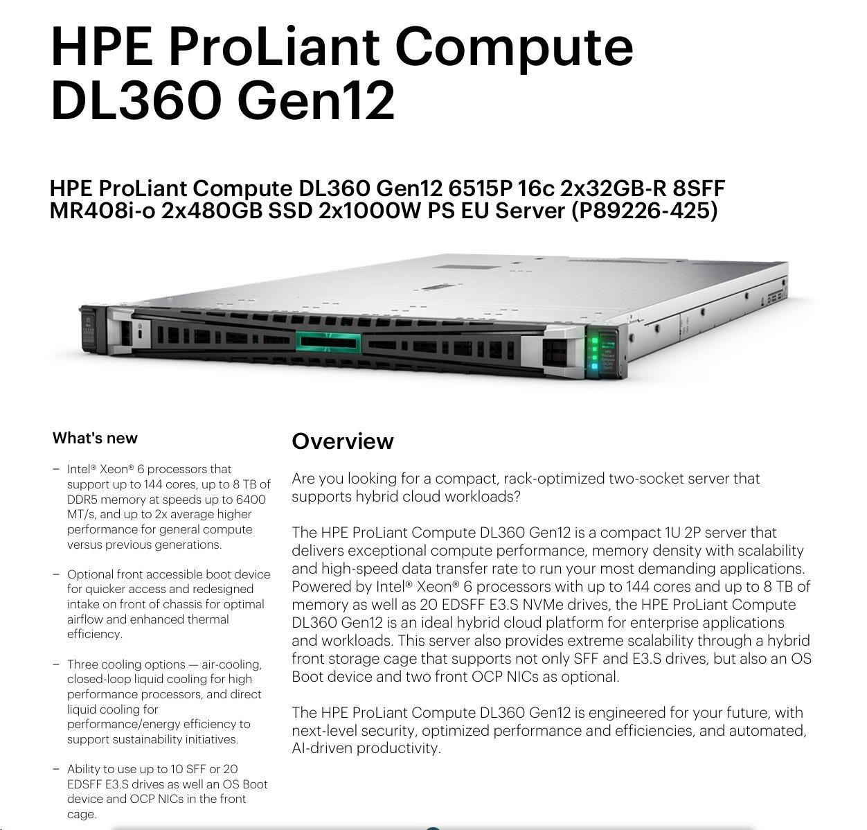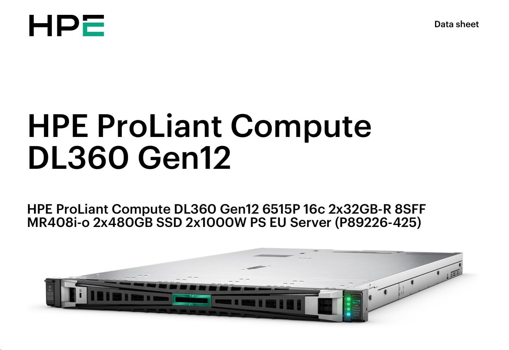 HPE PL DL360g12 6515P (2.4/16C) 4x32G (P69727) NS204i-uv2 MR408i-o 8SFF 2x1000W NBD333 Smart Choice.