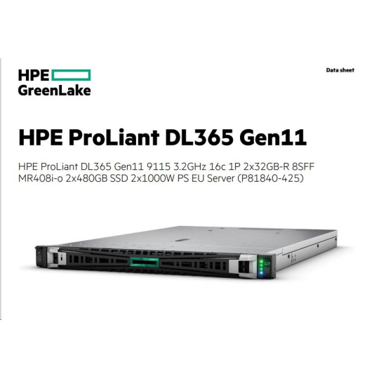 HPE PL DL365g11 AMD Epyc 9115 (2.6-4.1/16C) 2x32G-6400 2x480G MR408i-o/4G o2p10G-T 8SFF 2x1000W 1U Smart Choice