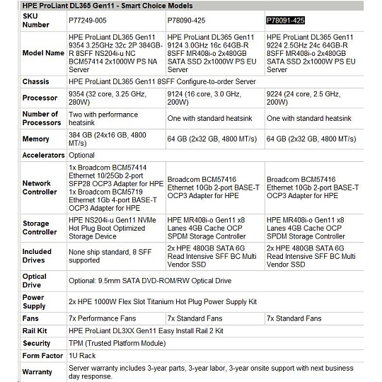 HPE PL DL365g11 AMD Epyc 9224 (2.5/24C) 2x32G 2x480G MR408i-o/4G ocp2p10G-T 8SFF 2x1000W 1U Smart Choice P78091-425