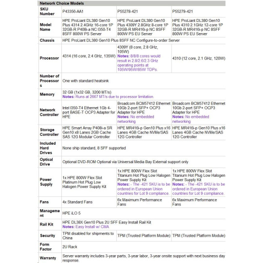 | Network Controller | Broadcom BCM57412 Ethernet 10Gb 2-port SFP+ OCP3 Adapter for HPE Notes: No embedded networking |