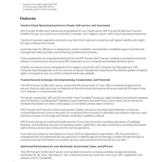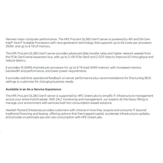 Model Name HPE ProLiant DL380 Gen11 4410Y 2.0GHz 12-core 1P 32GB-R MR408i-o NC 8SFF 800W PS Server