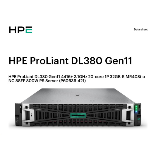 HPE PL DL380g11 4416+ (2.0/20C) 32G (P43328) MR408i-o/4G 8-26SFF 1000W 2p10G-T RENEW P60636R-421